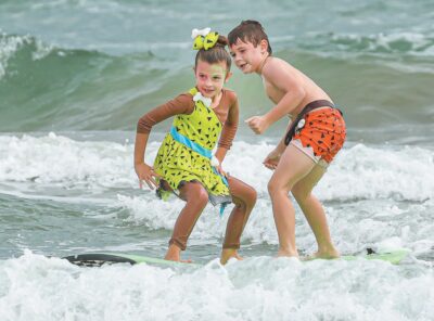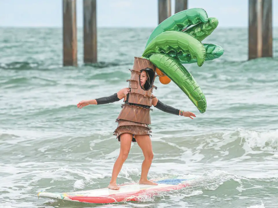Dressed as a coconut tree, 8-year-old Mae Mae Gainey of Port Aransas rides a wave during the 7th annual Texas Surf Camps Trick or Treat Costume Surf Contest at Horace Caldwell Pier on Saturday, Nov. 1. (Look inside for more on how folks celebrated Halloween in Port Aransas.)