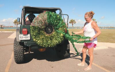 Michelle Neelans of Port Aransas decorates her jeep for the holidays on a recent day at Roberts Point Park.