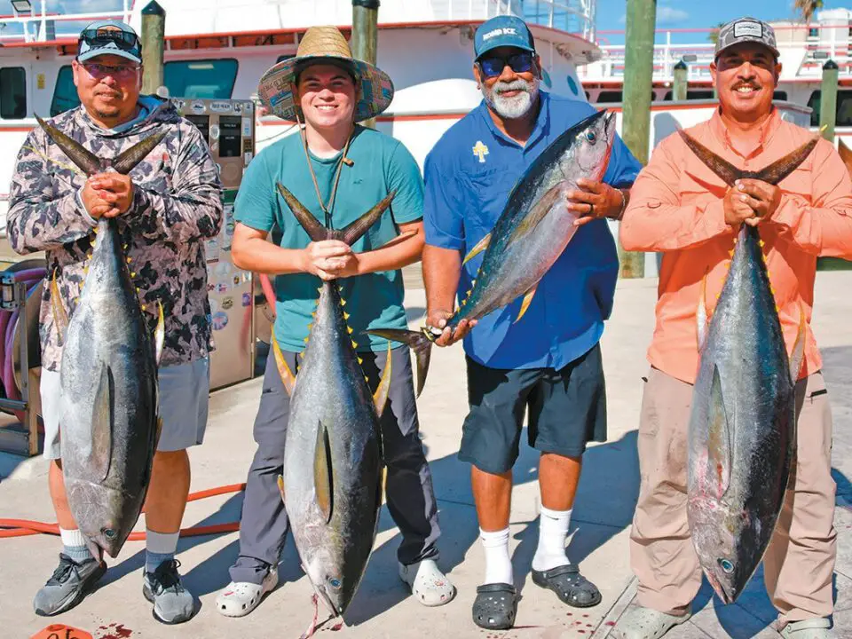 Showing off their nice yellowfin tuna catches are from left Gabriel Aguillon of San Antonio, Jude Aguillon,16, of Kerrville, Casey...