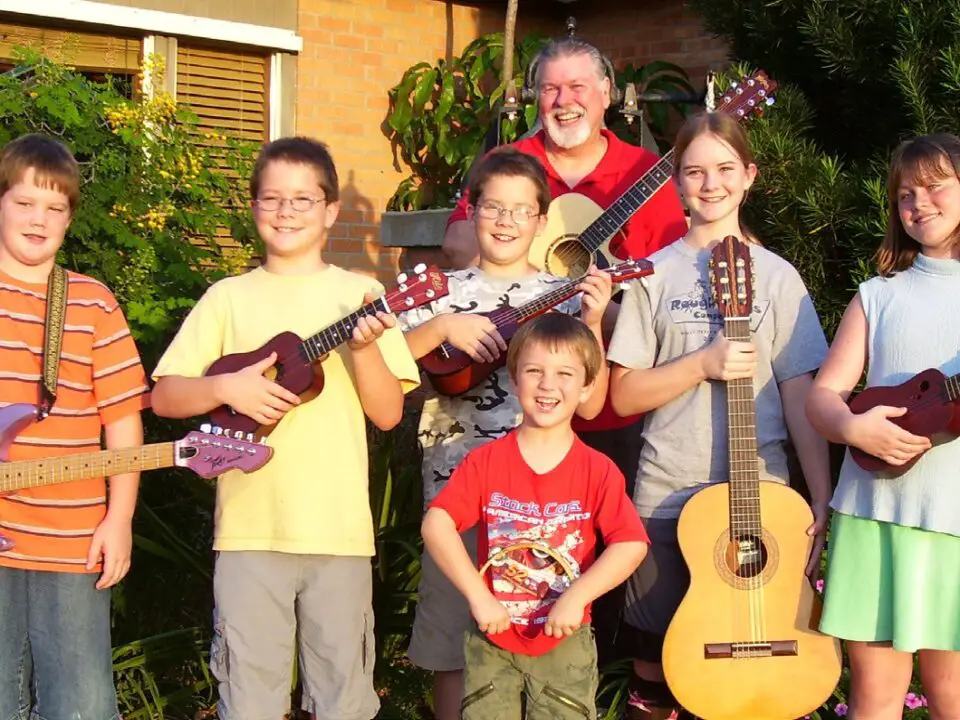 The Trinity Troupe was created when Eddy Skipwith began giving guitar and ukulele lessons on Fridays at Trinity-by-the-Sea Episcopal Church. The troupe played praise music each Sunday evening during the 7 p.m. worship service and sometimes during the 10 a.m. Sunday morning service. From left are Ty Morris with electric guitar, Elliott Morris with ukulele, Jason Morris with ukulele, Skipwith,...