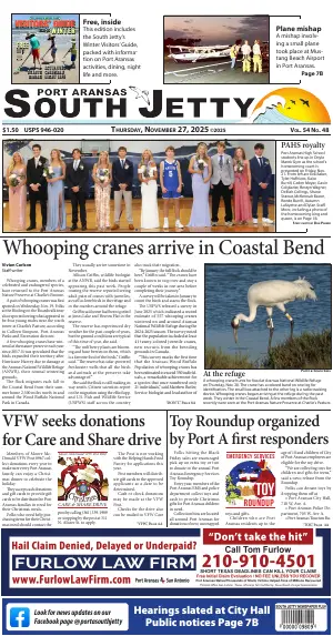 Whooping cranes, members of a celebrated and endangered species, have returned to the Port Aransas Nature Preserve at Charlie’s Pasture. A pair of whooping cranes was first spotted on Wednesday, Nov. 19. Folks at the Birding on the Boardwalk tour also reported seeing what appeared to be four young males near the south tower at Charlie’s Pasture, according to Colleen...