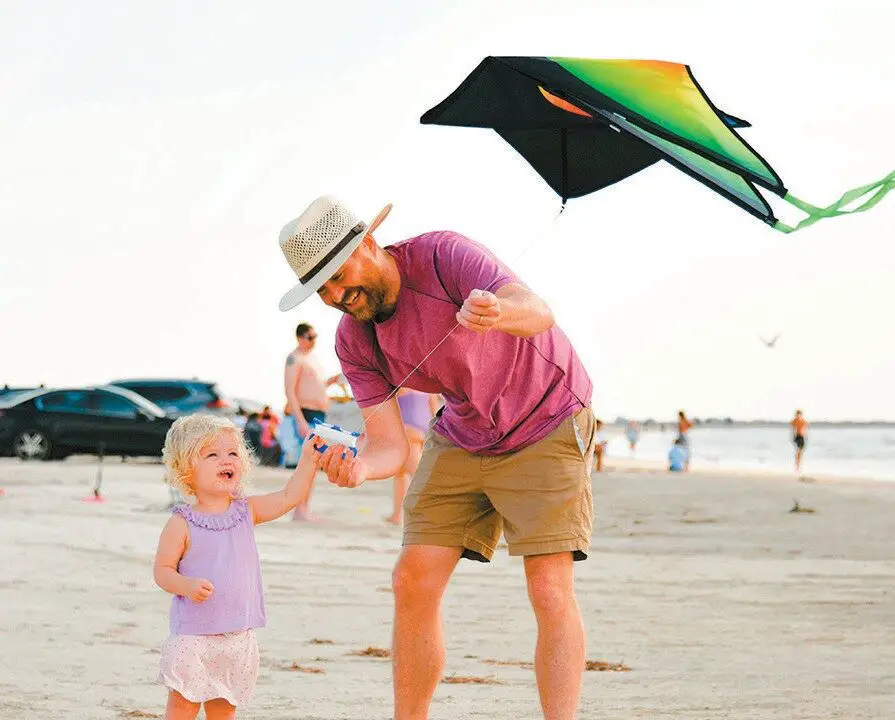Thomas Cook of Austin flies a kite on the beach in Port Aransas with his 2-year-old daughter, Frankie, on a recent day.