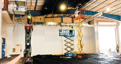 Crews paint the ceiling and install new air conditioning ducts inside the Port Aransas Civic Center on Monday, Nov. 17. The work is part of $9.5 million project that will expand the Civic Center and Port Aransas City Hall.