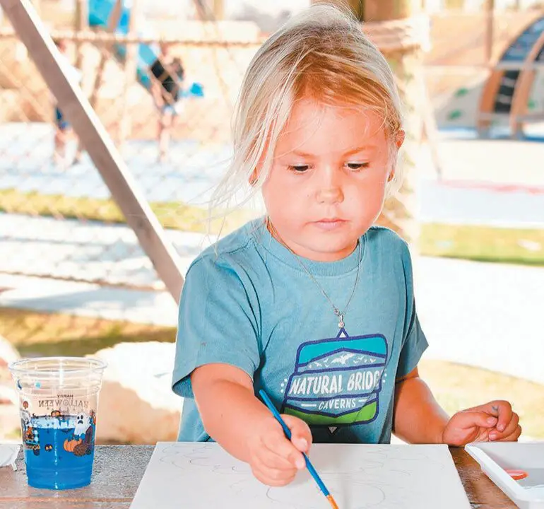 Bindi Bainbridge, 5, of Port Aransas, paints a turkey drawing at a family craft event at Roberts Point Park on...