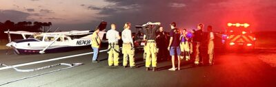 Things got rough for a small plane arriving at Mustang Beach Airport about sunset on Monday, Nov. 24. The pilot didn’t put the landing gear down, according to emergency personnel, so some skidding was involved. No injuries were reported. Port Aransas police and firefighters responded to keep other planes from trying to land while the plane remained there.