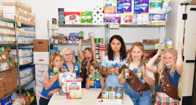 Members of Port Aransas Girl Scout Troop 4051 helped sort and stock recently donated food and other products at the Helping Hands Food Pantry on Saturday, Dec. 13. From left are Zoe Little, Ali Johnson, Beni Boyer, Margaret Boyer, Nyla Chang, Charlie Raley and Claire Mcrae.