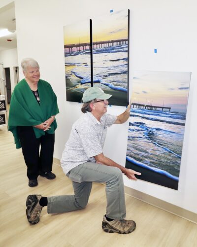 Photographer John Morris, president of the Port Aransas Art Center, hangs a triptych composed of photos he shot at the beach. He was hanging the photos at the Helping Hands Food Pantry headquarters on the grounds of Community Presbyterian Church in Port Aransas on Dec. 3. The paintings once hung in the home of Jo Lang, who worked at the […]