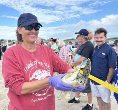 Lynn Hanson prepares to release a green sea turtle at the beach in Port Aransas on Friday, Dec. 12. It was one of 10 green sea turtles that were released at Marker 35 after being rehabilitated at the Amos Rehabilitation Keep (ARK) for injuries with causes ranging from fish hooks to being trapped between jetty rocks. Hanson is part of […]