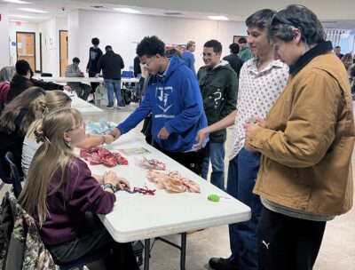 Port Aransas High School students peruse products offered by economics class students during this year’s ‘Eco Fair,’ held in the...