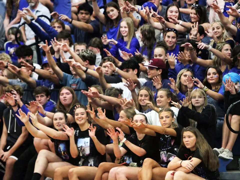 The home crowd holds their ‘spirit fingers’ high at a recent game in the Doyle Marek Gym.