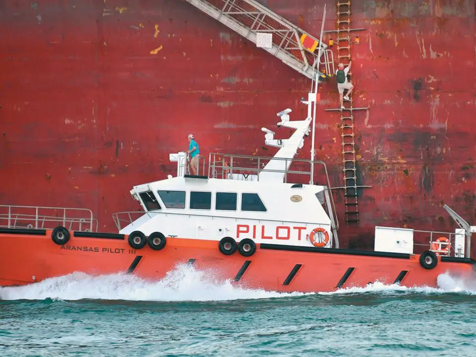 Capt. Matt Lynch of the Aransas-Corpus Christi Pilots organization climbs a ladder to get aboard ship as it was passing by the south jetty on a recent day in Port Aransas. At the helm of the pilot boat is Capt. Jason Revel. Lynch was climbing aboard to pilot the ship toward the Port of Corpus Christi. Members of the Aransas-Corpus […]