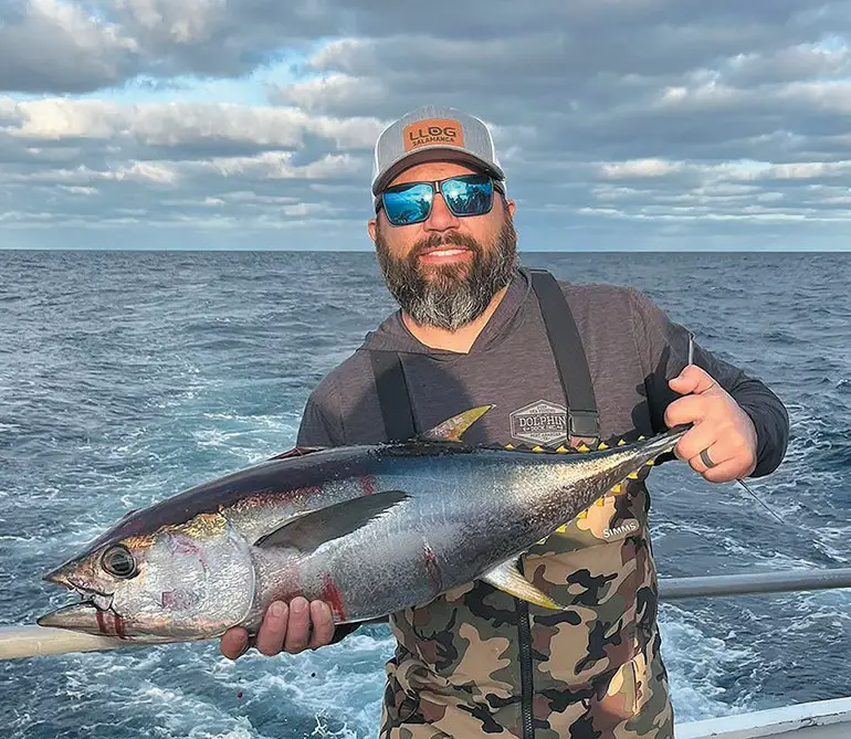 Jonathan Pytel will get some good eating from this yellowfin tuna he caught while on a 56-hour trip aboard the...