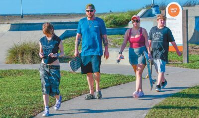 The Oliver family of Nixon did some skateboarding at Port Aransas Community Park on Saturday, Dec. 27. From let are Aubree, 14, dad Brian, mom Kaylee and Darren, 10.