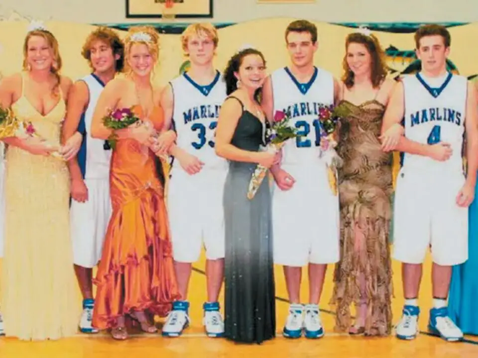 Homecoming ceremonies were held at the Marlin varsity basketball game on Jan. 19, 2007. The full court, from left, were 2006 homecoming queen Heather Grumbles with escort Ryan Phillips, newly crowned 2007 queen Whitney Williams and her escort Matt Dunton, senior duchess Katie Coeckelenbergh and her escort Matt White, junior duchess Elaine Franco and her escort Sam Burt, sophomore duchess...